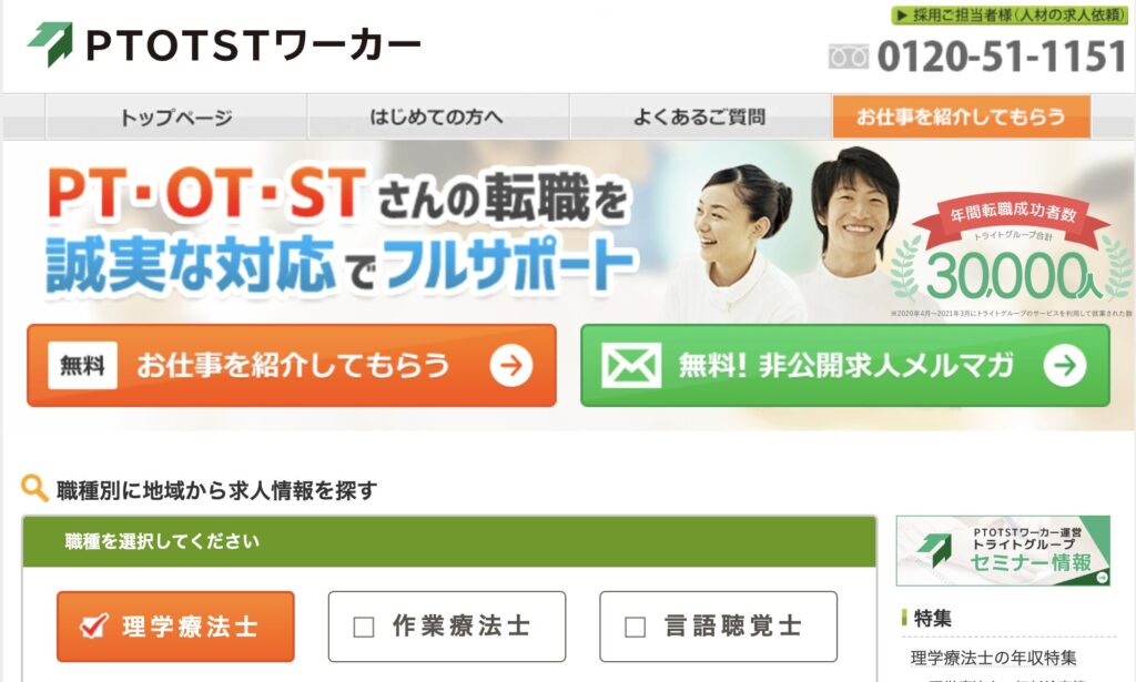 公式サイトPTOT人材バンクマイナビコメディカルPTOTSTワーカーレバウェルリハビリ
