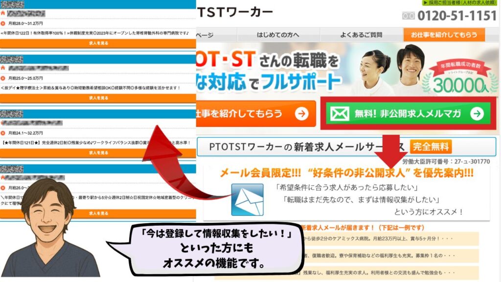 無料メルマガに登録することで月に1〜2回、新着の非公開求人がメールで届きます。